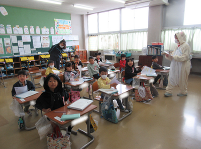 業間と昼休みには、プロジェクトメンバーの6年生13人が準備したお化け屋敷を行いました。多くの児童や教員が、お化け屋敷に来て楽しんでくれました。