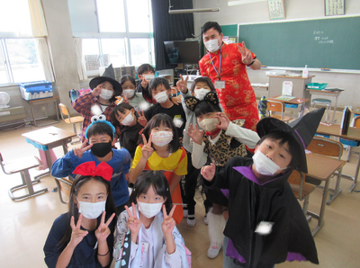 ハロウィンの仮装OKの日なので、子供たちも教員も様々な仮装をして、楽しく1日を過ごしました。