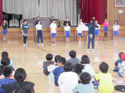 素敵なハーモニー 投稿: 管理者 (09/25) 今日の音楽集会では、合唱部が那須地区学校音楽祭で発表する「music fairly~ピアノと歌おう~」を歌ってくれました。 美しい歌声に、児童たちも惹きつけられた様子でした。何人かに感想を聞くと、「美しい歌声だった。」「「感動した。」という声があがりました。練習を積み重ね、素敵なハーモニーを作り上げた合唱部。9月30日(火)の那須地区音楽祭では、自信をもって堂々と発表してほしいと思います。 Tweet -