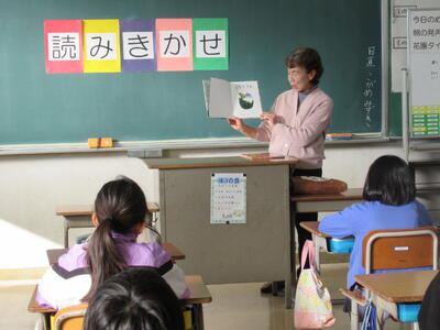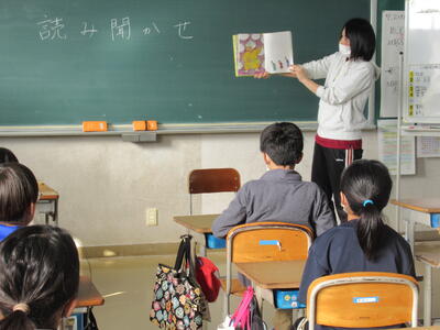 今日の朝の活動は読み聞かせでした。1~3年生には地域の方3名が読み聞かせをしてくださいました。児童が楽しめるように、また、理解しやすいように、内容を考えて本を選んでくださっていました。本当にありがたいです。