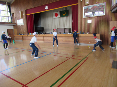 5年生は体育の授業でした。ベースボール型ゲームを楽しんでいました。笑顔がたくさん見られました。