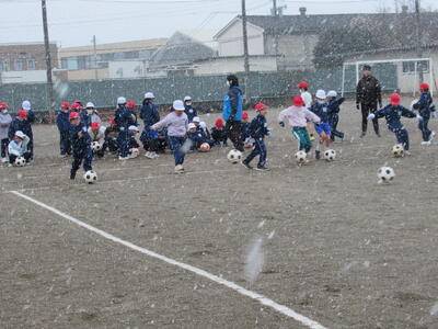 雪にも負けず 投稿: 管理者 (09:29) 1・2年生は、雪がひどくなった1校時に体育がありました。今日の内容は、「ボールけりゲーム」です。降りしきる雪もなんのその。みんな元気に活動していました。 一生懸命ボールを追いかけるちかっ子。寒さに負けず頑張っています。 Tweet -