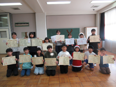 集会後は表彰を行いました。芭蕉の里子ども俳句大会、那須地区芸術祭書道の部、市民憲章に関する作文、栃木県人権に関する作文、那須地区児童生徒作品展覧会、下野教育書道展、それぞれに入賞した児童に賞状を渡しました。受賞者のみなさん、おめでとうございます!