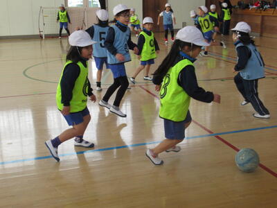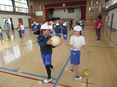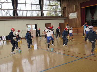 1~4年生は、エストサッカースクール指導者の増子さんに体育の指導をしていただきました。ボールを使って多様な動きにチャレンジしたり、サッカーのゲームをしたりしました。たくさん走って体がポカポカになり、「楽しかった~!」とつぶやく子がたくさんいました。