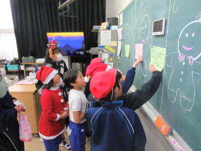 クリスマスプロジェクト「みんなで楽しむクリスマス会」も行いました。業間にビンゴ大会、昼休みになかよし班ごとのウォークラリーを行いました。6年生のプロジェクトメンバーが一生懸命準備してくれたおかげで、ちかっ子全員が楽しむことができました。