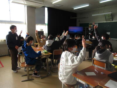 教室をのぞくと、新年の抱負を発表したり、冬休みのクイズをしたり、すぐに学習に取り組んだりと、いろいろな活動が行われていました。