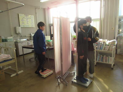 学年ごとに冬休み明けの身体計測をしています。子供たちは、計測する先生に「お願いします。」「ありがとうございました。」としっかりあいさつすることができて素晴らしいです。