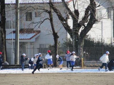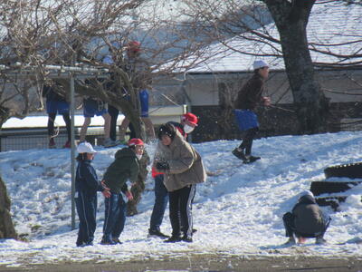 11日に降った雪が、校庭南側に残っています。昨日の昼休みは、多くの子供たちが校庭で雪遊びを楽しみました。雪が降ることが少なくなっている現在では、貴重な体験かもしれませんね。