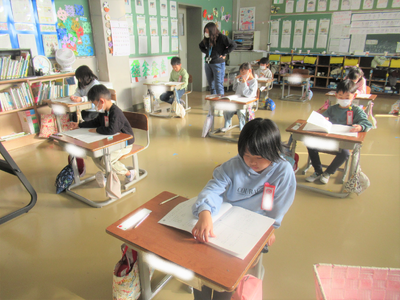 今日は、全学年の学力確認テストを行いました。どの学年の児童も真剣な表情でテストに臨んでいました。