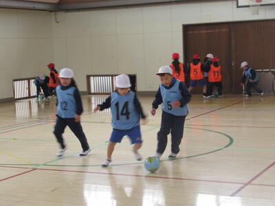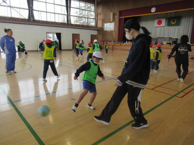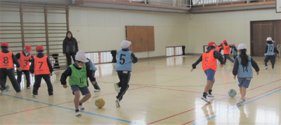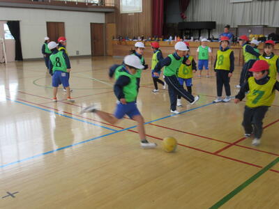 1・2年生の体育は、エトスサッカースクール指導者の増子さんに御指導いただきました。今日も、楽しみながらたくさん体を動かしました。