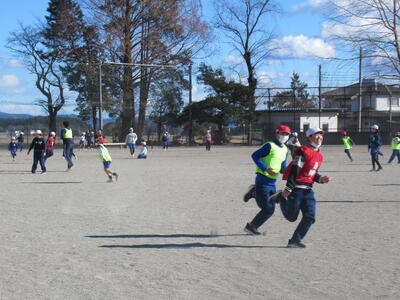 昼休みにはパワーアップタイムがありました。今日は3年生と体育委員が鬼になり、こおり鬼を全校生で行いました。こおり鬼は、鬼にタッチされると氷のように動けなくなり、仲間にタッチしてもらうと動けるようになる、鬼ごっこと助け合いの要素が合わさった遊びです。鬼も逃げ手も、一生懸命走りました。