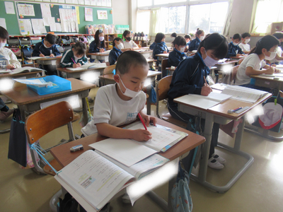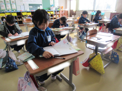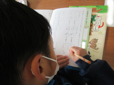1年生は、書写ノートに取り組んでいました。文字がとても上手に書けるようになっています。