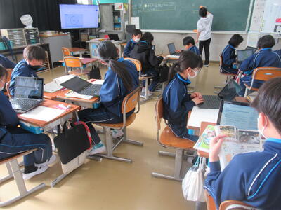 4年生は社会の授業でした。教室に誰もいないと思ったほど、静かに調べ学習をしていました。集中力の高さに驚きました。