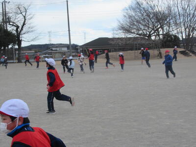 昼休みはパワーアップタイムがありました。今日は、全校生で「マグロおに」をしました。マグロおには、逃げ手もおにも、マグロのように止まらずに走り続けなければなりません。タッチされたらビブスを受け取って、おにになって追いかけます。
