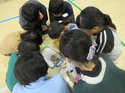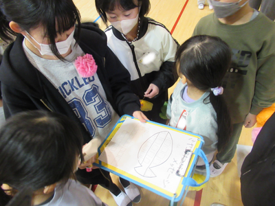 次は、暗号を解きます。どの班も、なかよし班のみんなで頭を突き合わせて考えていました。