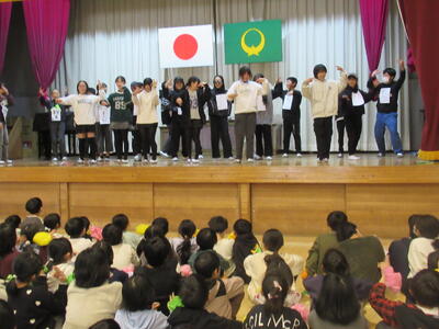 プレゼントのお礼に、6年生が出し物を見せてくれました。