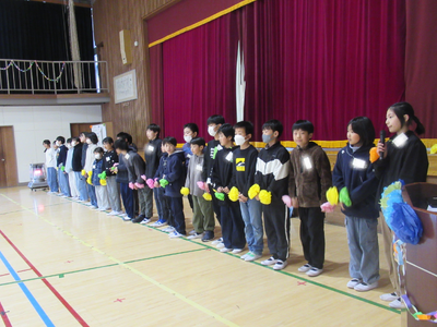 そして、6年生からも下級生にメッセージのプレゼントがありました。