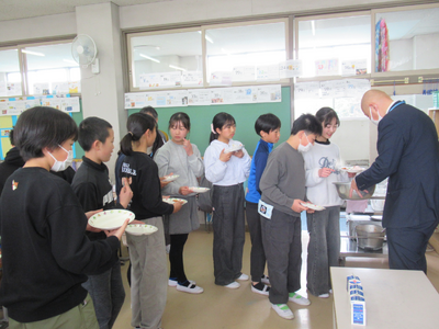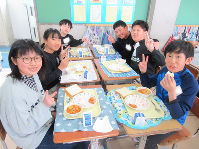 6年生にとっては、小学校最後の給食でした。いつもどおり、全員おいしく食べていました。