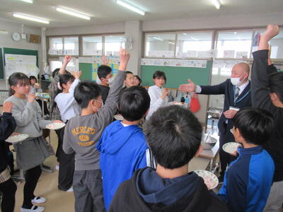おかわりじゃんけんも今日が最後です。中学校でもモリモリ食べてください。