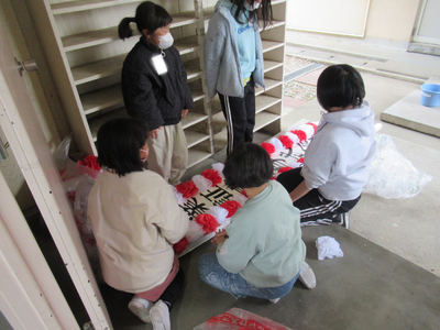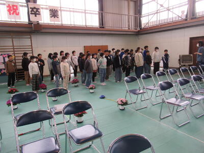 5校時は、4・5年生が卒業式の準備をしてくれました。進んで働き、会場や校舎内をきれいにしたり、準備をしたりしてくれました。