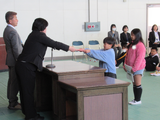 1校時に修業式を行いました。修了証書と進級祝い品を学年代表児童がしっかりと受け取りました。全学年とも、式中の態度もとても立派でした。