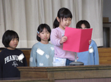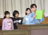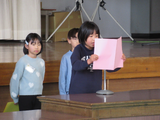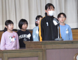 令和7年度を振り返り、努力したことやできるようになったことを学年代表児童が発表しました。学習や生活の中で、一生懸命がんばったことが分かる発表でした。
