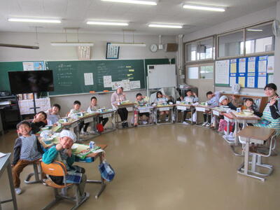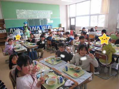 各クラスの様子を見てみると、久しぶりの給食をおいしそうに食べていました。
