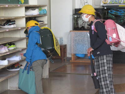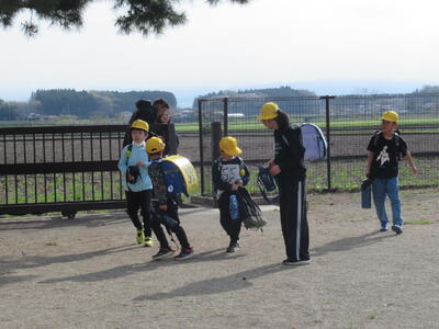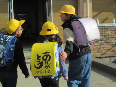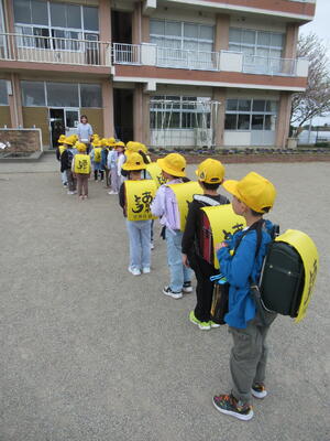 今日は1年生入学後、初めての登校でした。通学班で登校する様子を見ると、1年生もがんばって歩いていました。また、上級生たちも1年生が安全に登校できるよう、様子をよく見ながら歩いてくれました。