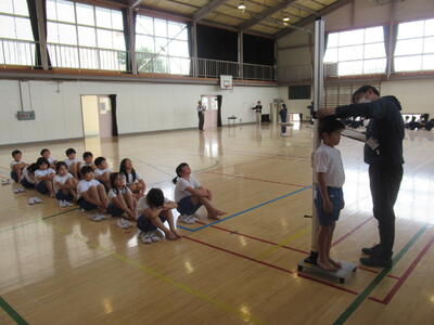 年度始めの全学年の身体計測・視力検査と1・2・3・5年生の聴力検査を行いました。