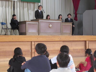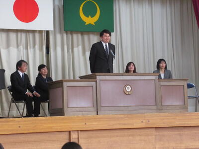 子供たちは、真剣な眼差しでお話を聞いていました。中には、あふれる涙を拭う子もいました。離任された先生方の目にも光るものがありました。やはり、お別れするのは寂しいです…。