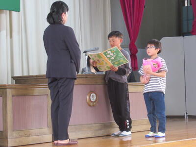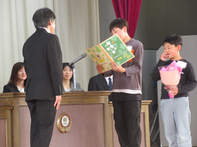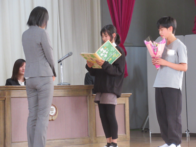 代表児童からお手紙と花束を贈りました。先生方も嬉しそうでした。