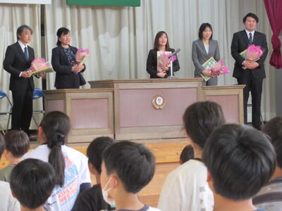 3月までお世話になった5名の先生方の離任式を行いました。久しぶりに会えたので、子供たちも離任された先生方も嬉しそうでした。